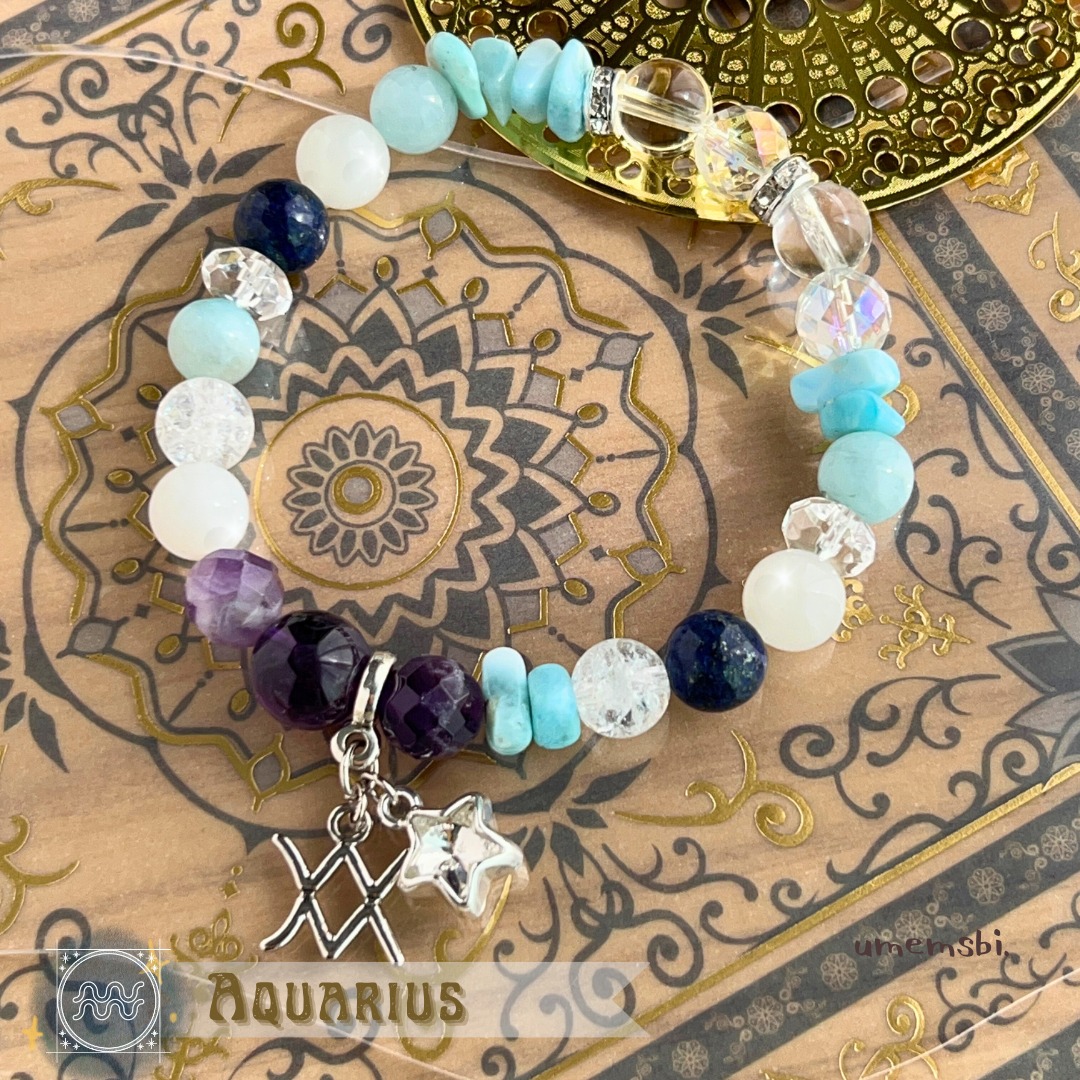 水瓶座の自由で独創的なエネルギーを引き出しながら、アメジストの癒しと直感力をサポートする、小さな守護石ブレスレット。