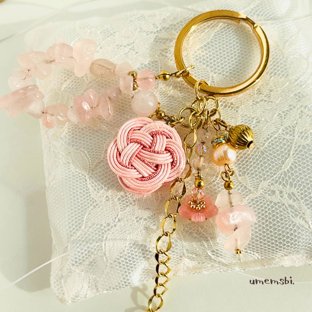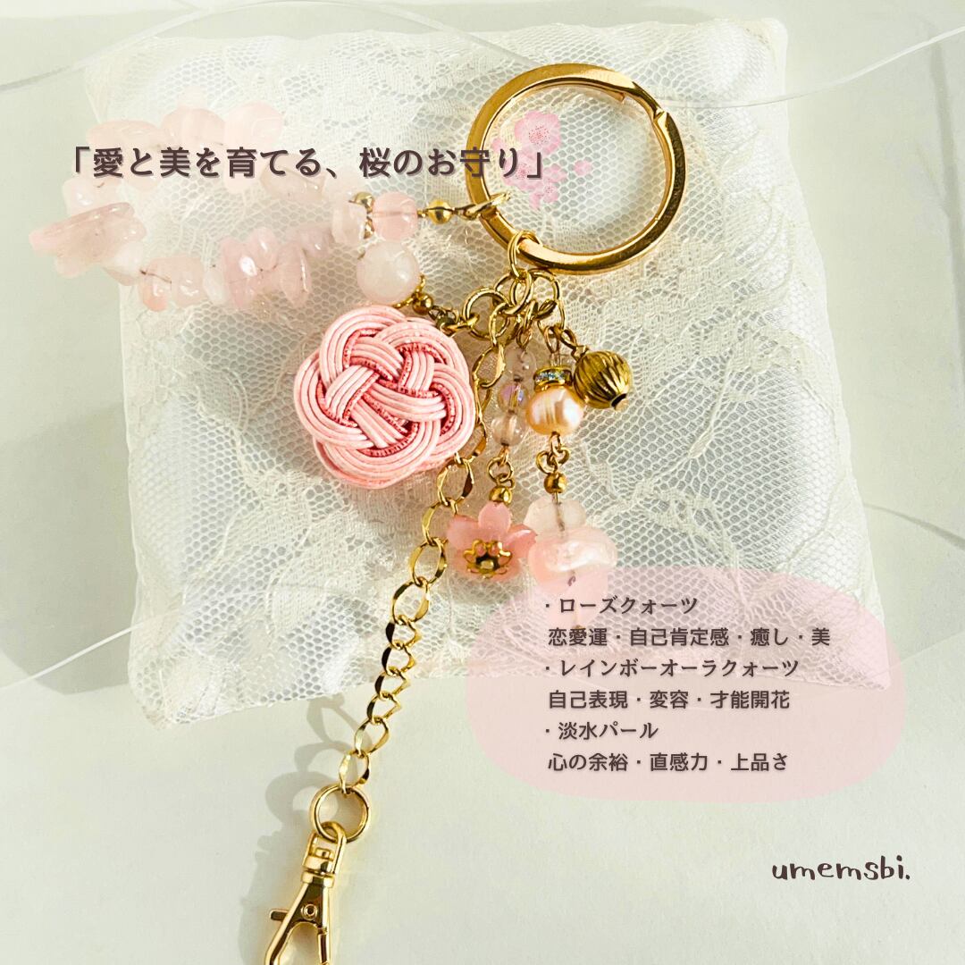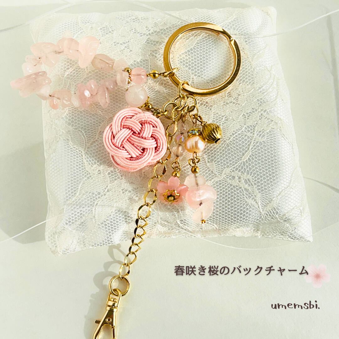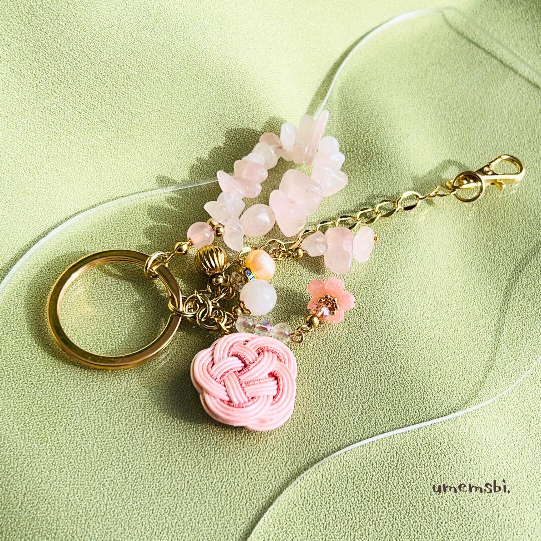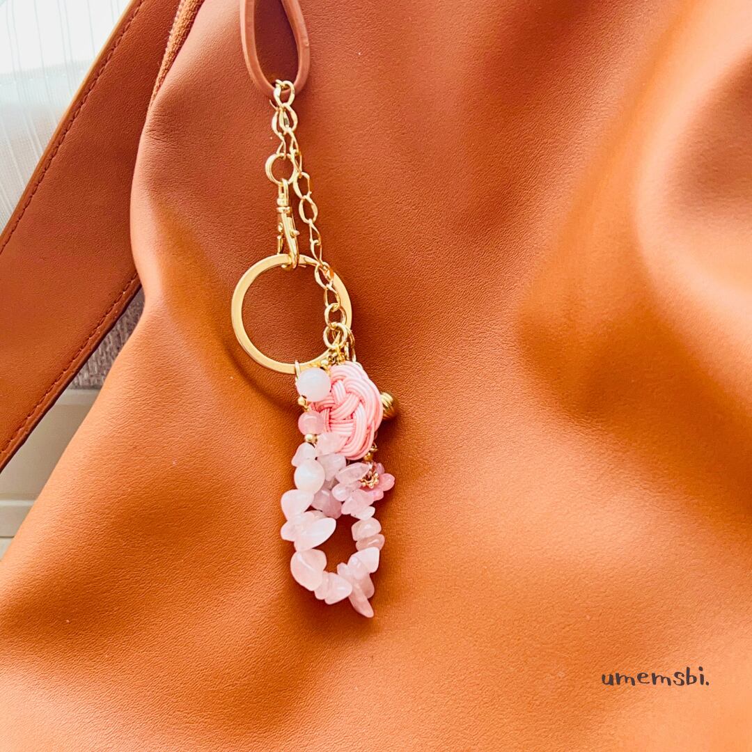 天然石 バッグチャーム 桜 ローズクォーツ 春咲き 恋愛成就 お守り 華やかさを纏う『春咲きバッグチャーム』 ピンク 梅結び