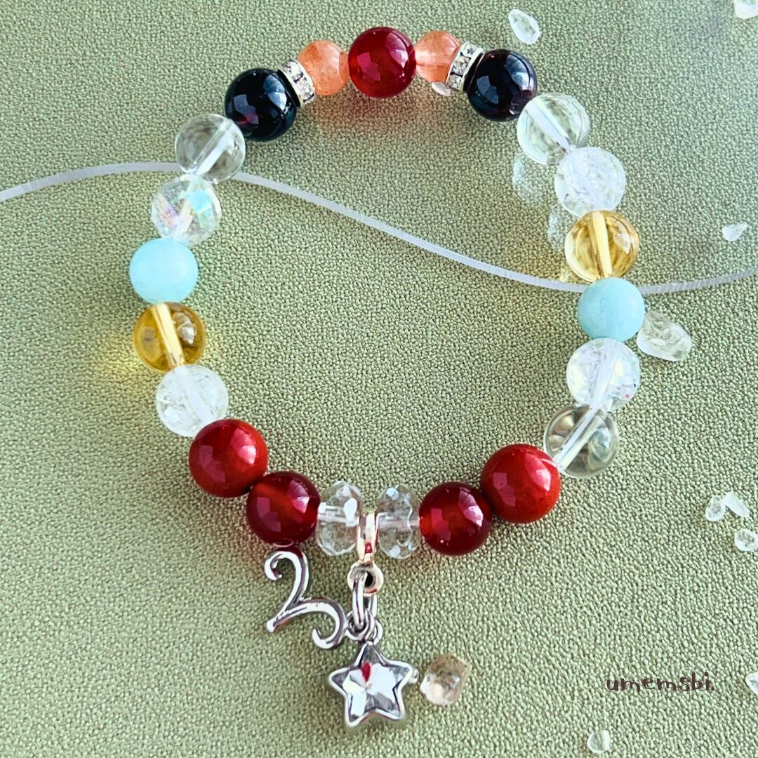 情熱や行動力を象徴する赤系の石を中心に、活力や前向きさ、そして豊かさへとつながる流れを意識して組み合わせています。