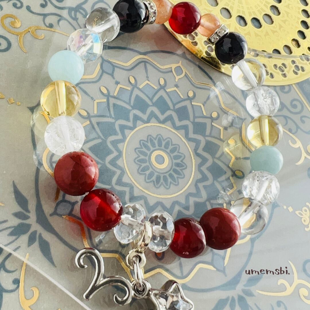 #牡羊座 #おひつじ座 #誕生石 #守護石 #お守り #ブレスレット #パワーストーン #天然石アクセサリー #手作り #ギフト #誕生日プレゼント #行動力 #挑戦 #情熱 #星座 #アクセサリー #梅結び #天然石