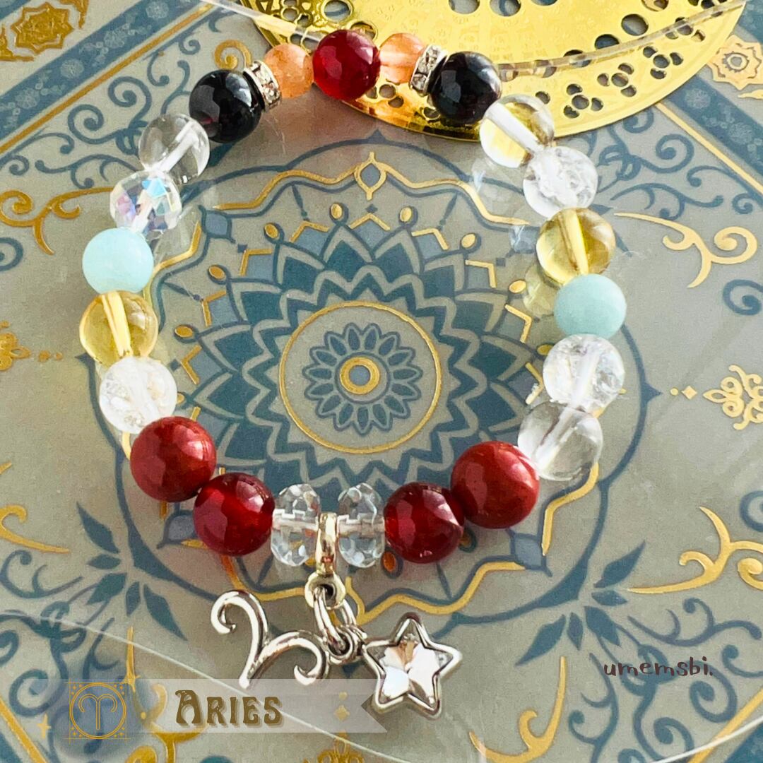 牡羊座 ブレスレット|守護石・天然石・お守り おひつじ座 ブレスレット|誕生石|天然石 牡羊座のお守りブレスレット|赤・3月・4月|天然石