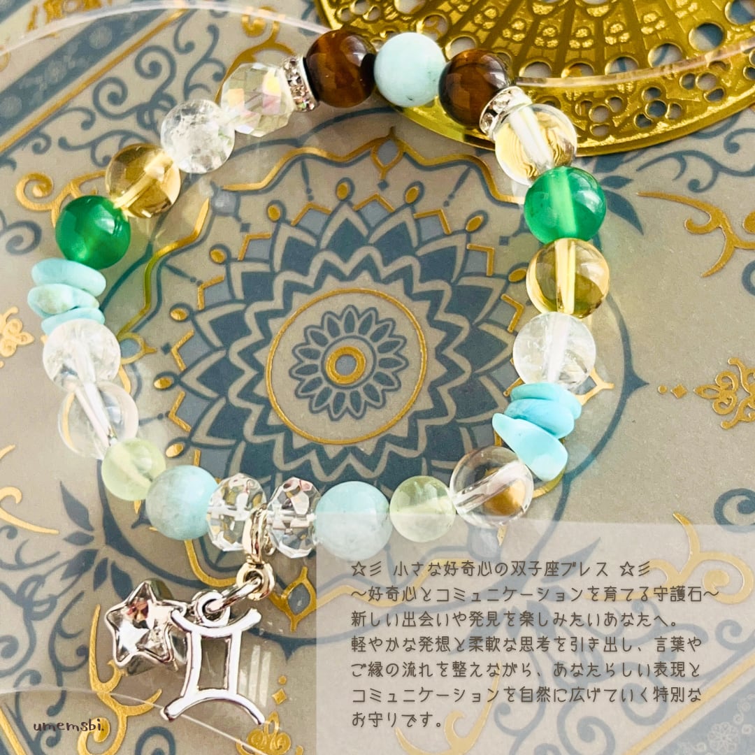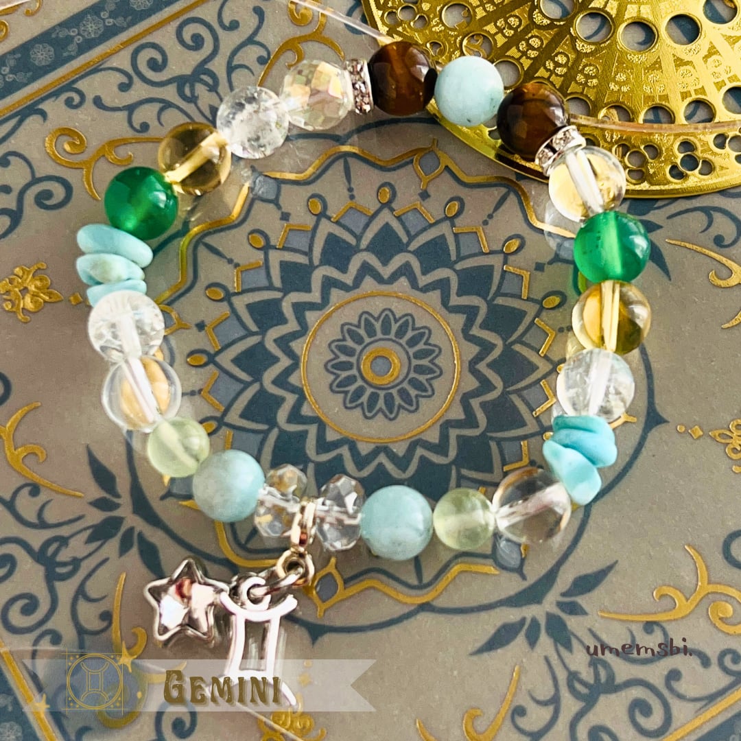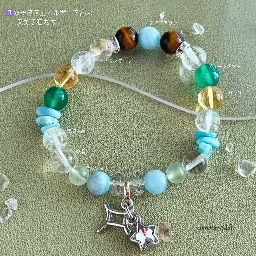 #双子座 #ふたご座 #守護石 #お守り #ブレスレット #パワーストーン #天然石アクセサリー #手作り #ギフト #誕生日プレゼント #知性 #コミュニケーション #好奇心 #星座 #アクセサリー #梅結び #天然石