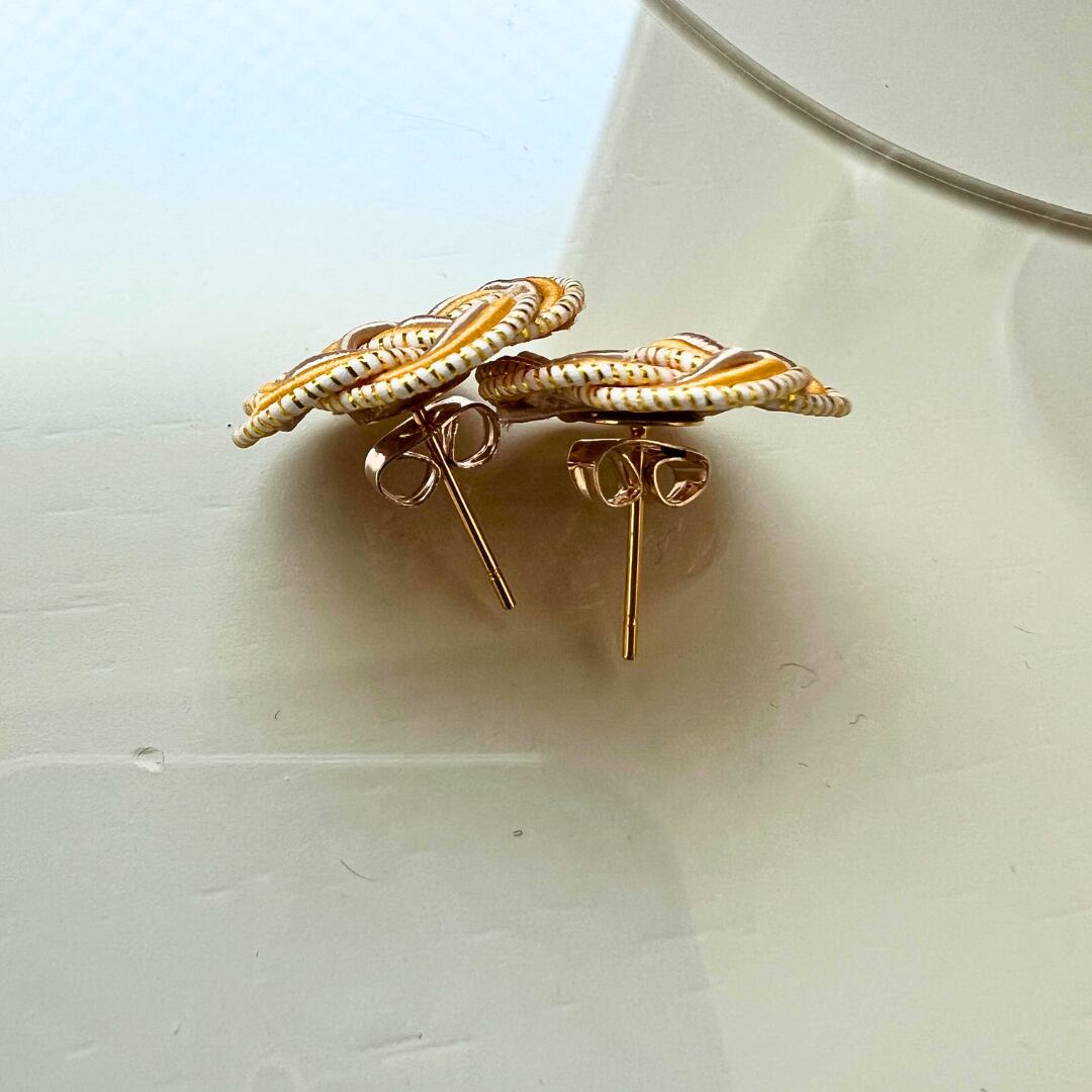 和のくすみカラーが耳元に上品な華やぎを添えます。