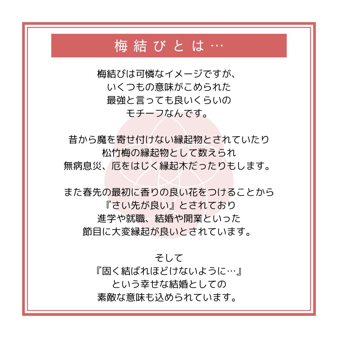 活動初期に生まれた特別な配色と、立体的な二段重ねの梅結びを