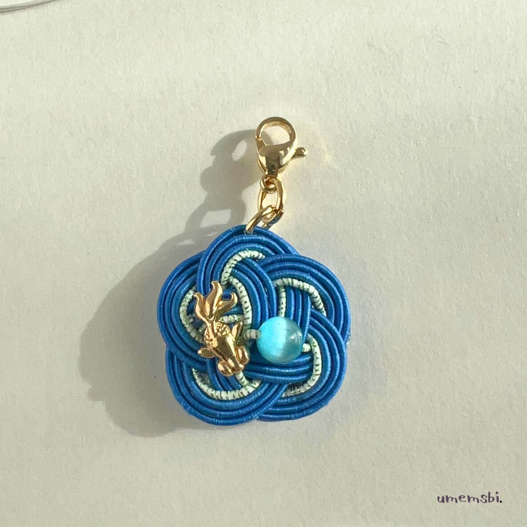 金魚とキャッツアイの梅結びチャーム ー池の楽園ー