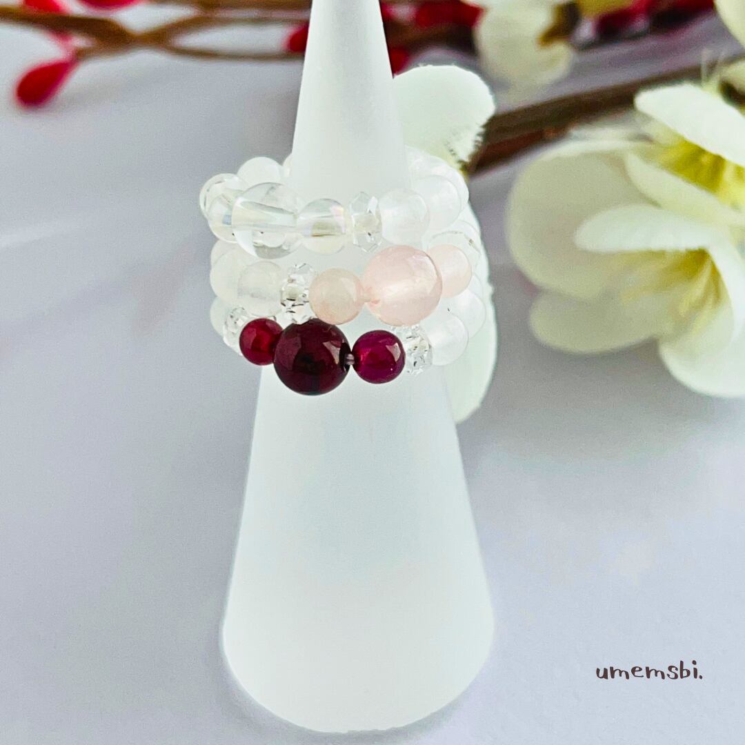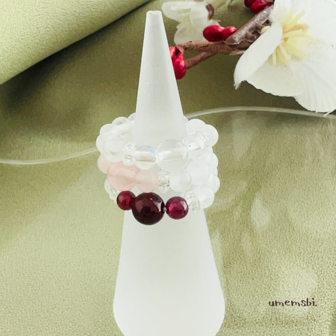 #天然石リング #お守りアクセサリー #ハンドメイドアクセサリー #梅モチーフ#和モダンアクセサリー #大人可愛い #シンプルアクセサリー #スピリチュアルジュエリー #自分へのご褒美 #誕生石好き #ガーネット #ローズクォーツ #水晶 #浄化 #願いを込めて